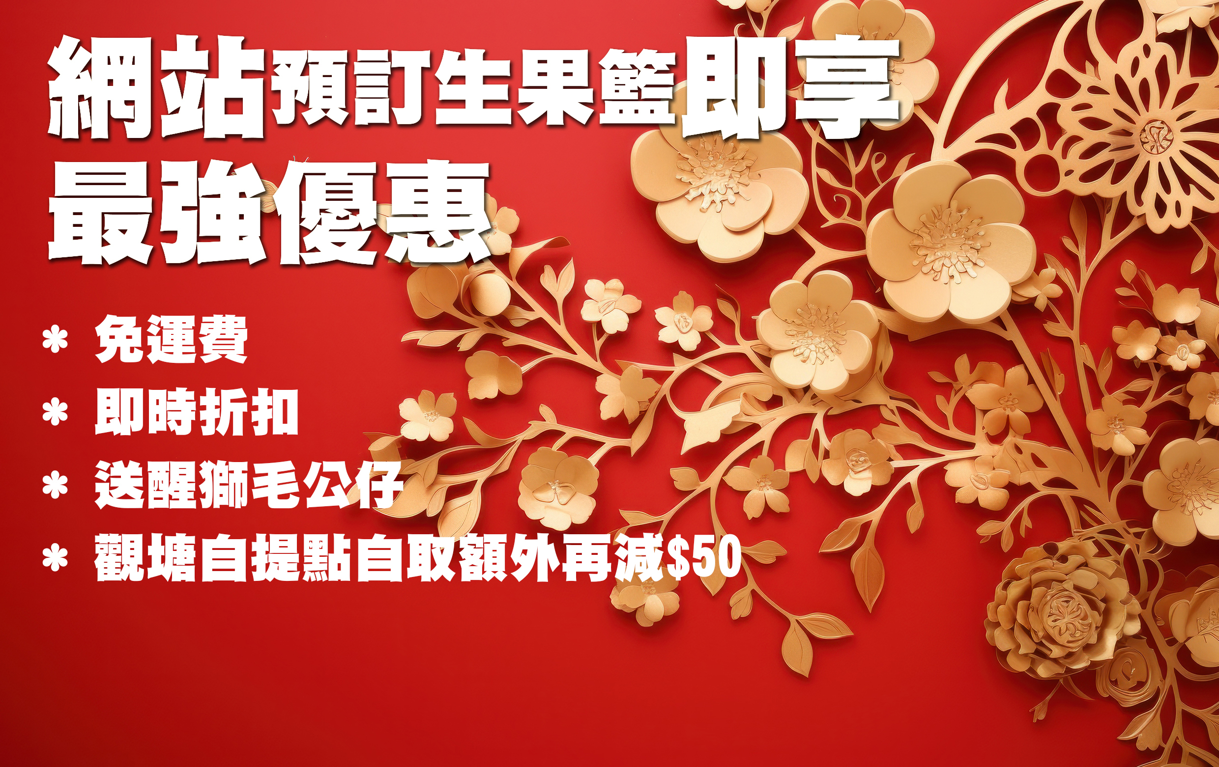 購買生果籃、生果盒、花禮 (運費全免 / 自提點自取減$50)